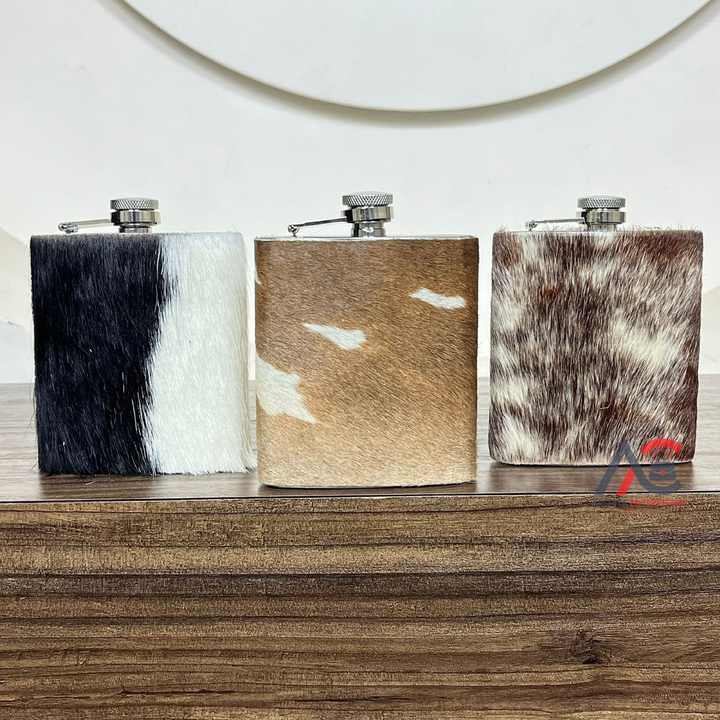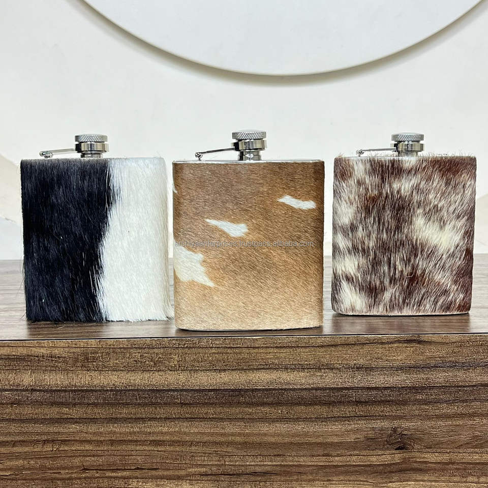 New Handmade 8oz Rustic Cowhide Leather Flask Cover Durable Genuine Leather Stainless Steel Eco-friendly Luxury Hip Flask Holder