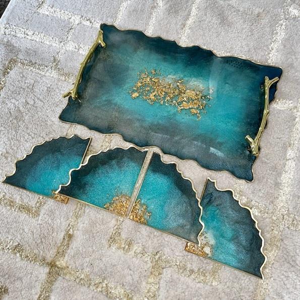 New Handmade Antique Design Resin Serving Tray Single Piece for Flat Restaurants & Hotels Dinner Servings