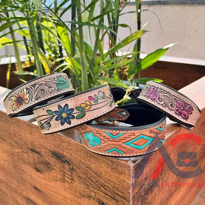New Handmade Carved Leather Dog Collar Floral Training Padded Puppy Collar High Quality Genuine Leather Comfortable Dog Collars