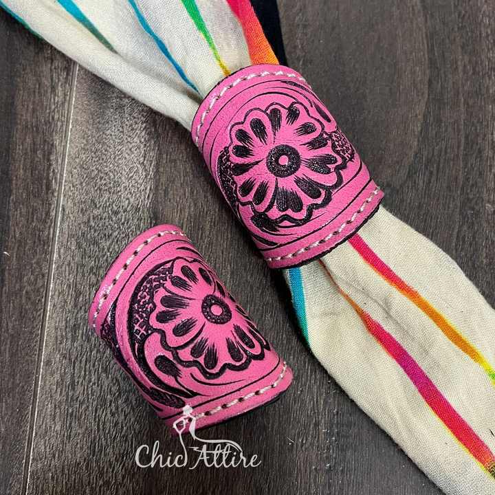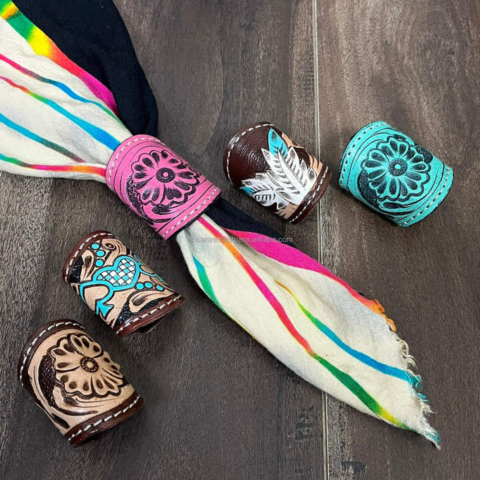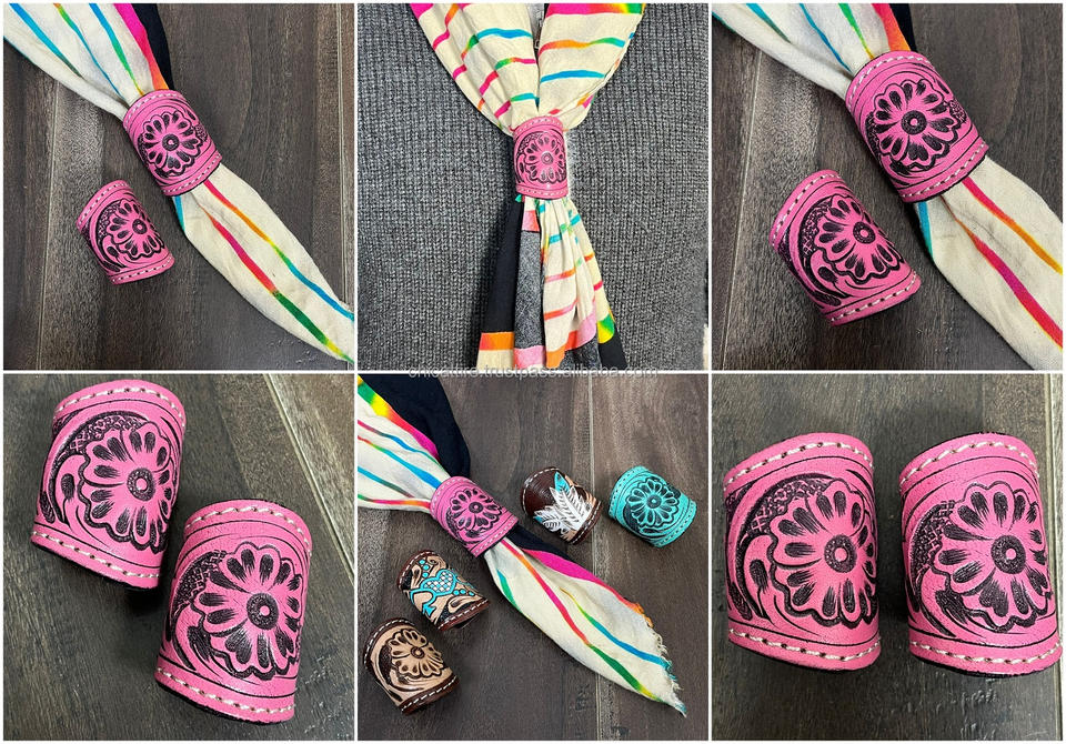 New Handmade Cow Leather Bandana Slide Ring Western Scarf Accessory Women's Designer Hand Tooled Genuine Leather Bandana Slide