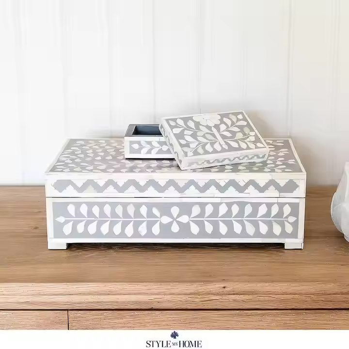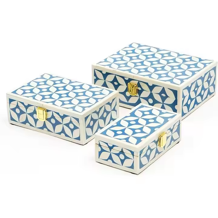 New Handmade Decorative Bone Inlay Jewelry Box Available in All Sizes with Colored Bone Inlay for Added Style