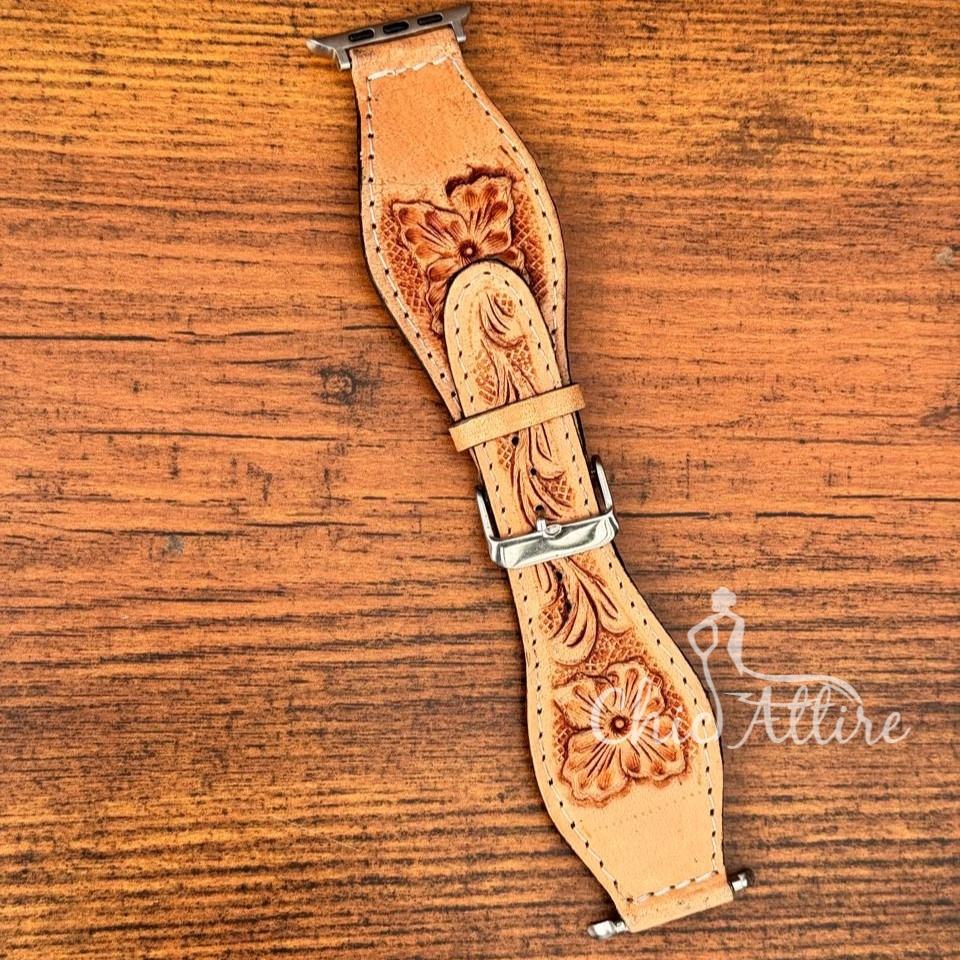 New Handmade Genuine Leather Custom Design Western Floral Tooled Painted Watch Bands Boho Western Replacement Watch Straps