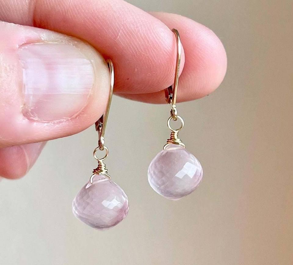 New Handmade Gold Plated Rose Quartz Teardrop Earrings With CZ Flower Design Elegant Natural Gemstone Dangle Jewelry for Women
