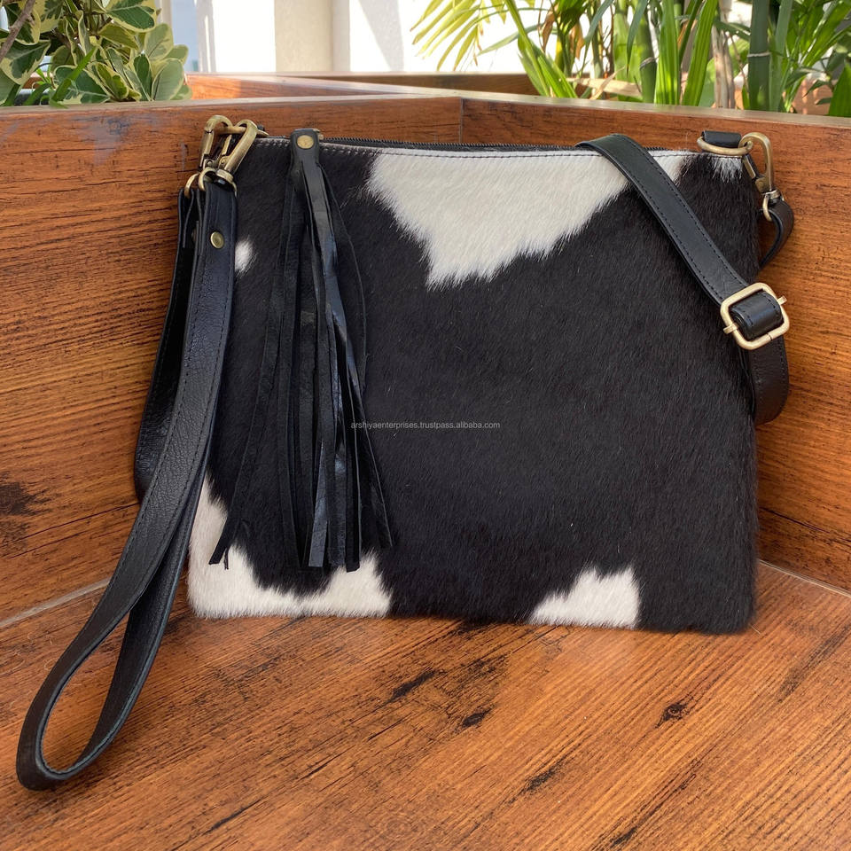 New Handmade Hair on Cowhide Large Wristlet & Tassel Crossbody Bag for Women's Western Genuine Leather Custom Luxury Handbags