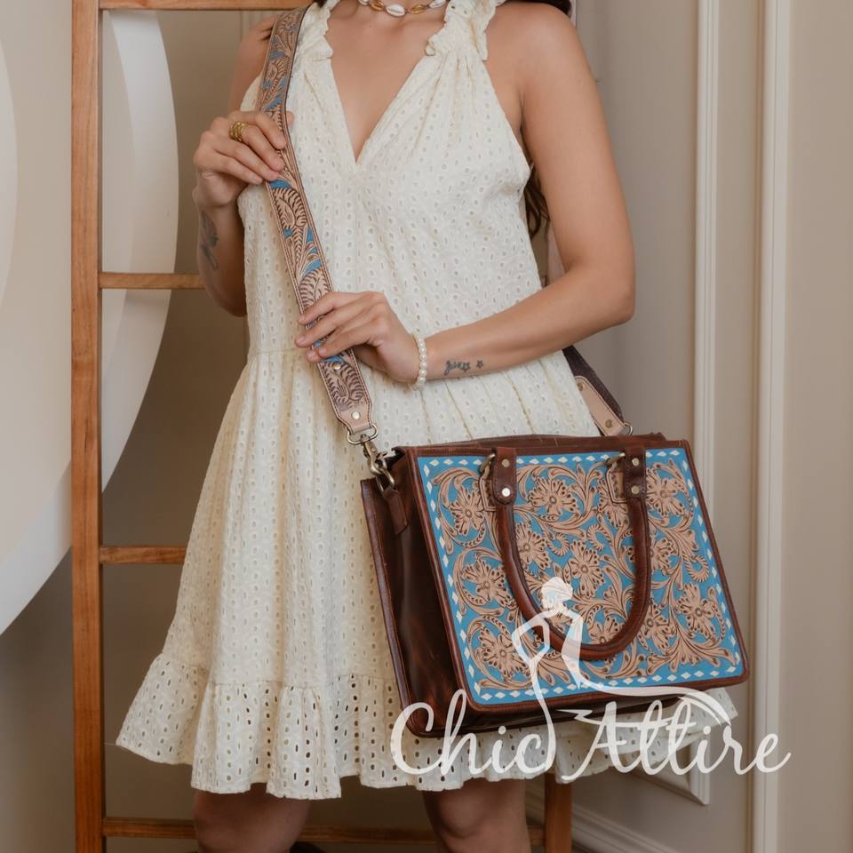 New Handmade Hand Tooled Leather Tote Bags 100% Genuine Leather Concealed Carry Purse Western Cowhide Crossbody Bags for Women's