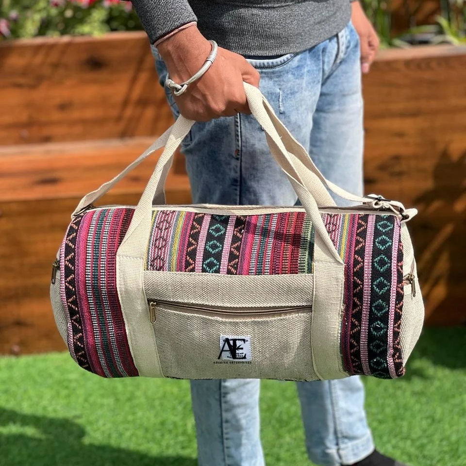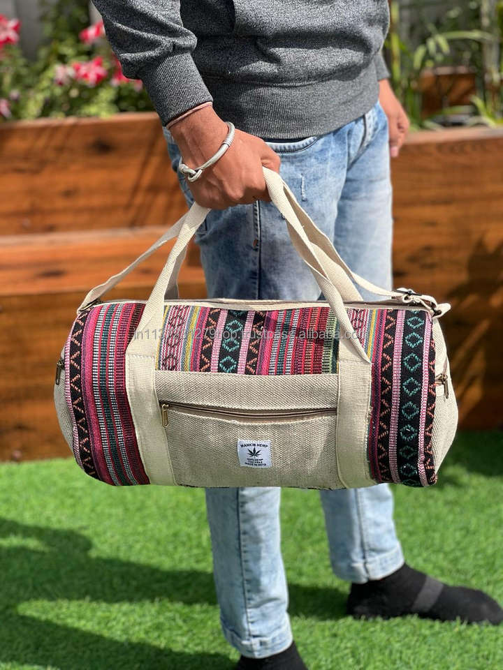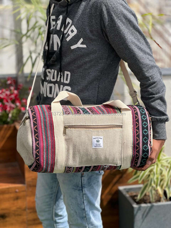 New Handmade Hemp Duffel Bag Boho Hippie Style Overnight Weekender Bags Hot Sale Ecofriendly Cotton Material Travel Luggage Bags