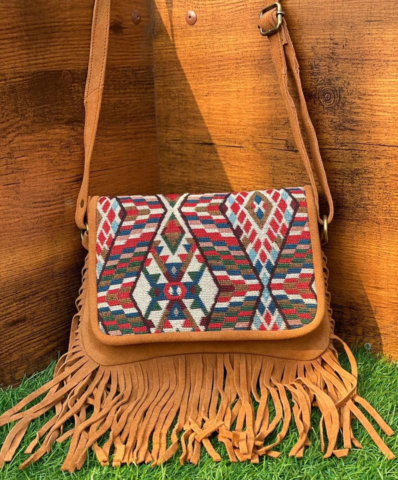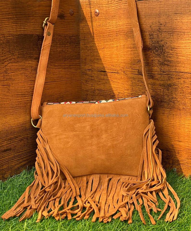 New Handmade Hot Sale Jacquard Suede Leather Fringe Sling Bag Multi Use New Vintage Design Crossbody Bag Cheap Rate Bulk Product
