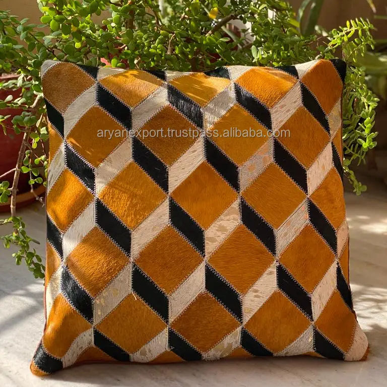 New Stylish Patch Work Genuine Hair On Hide Cushion Cover