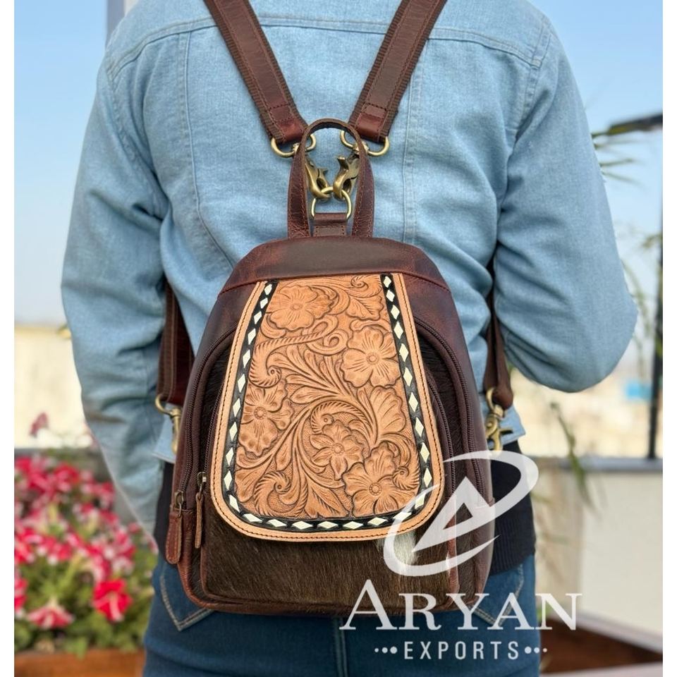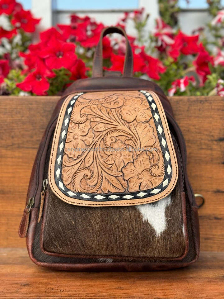 Product name:Hand Tooled Cowhide Leather Women Backpack