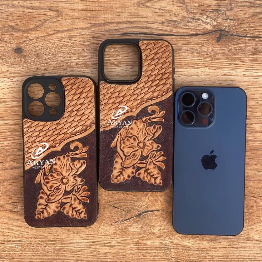 New Handmade Stylish Tooled Leather Phone Case Personalized Vintage Luxury High Quality Tooled Floral Case for IPhone 15 Pro Max