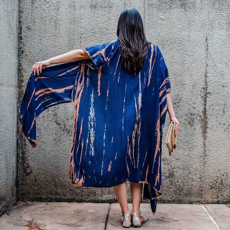 2025 Handmade Tie Dye Long Rayon Beach Cover up Kimono Summer Vacation Free Size Sexy Beach Kimono For Women