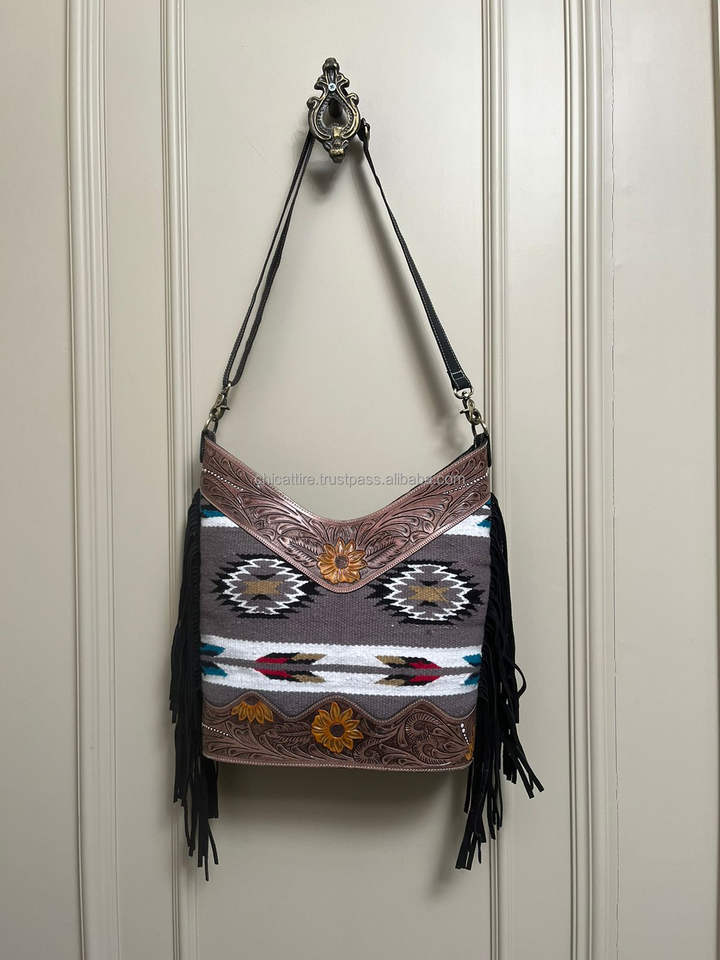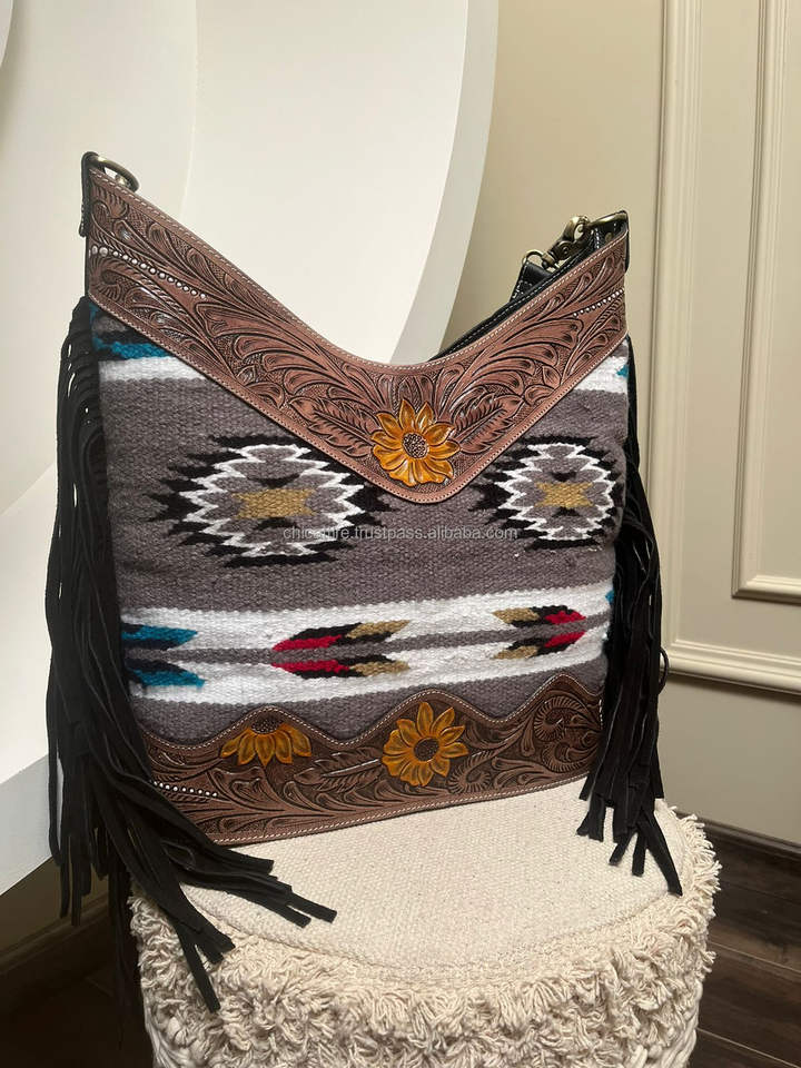 Product name:Hand Tooled Saddle Blanket Fringe Purse