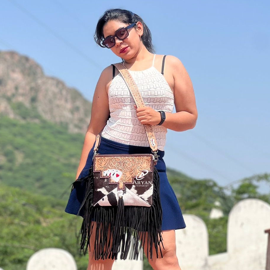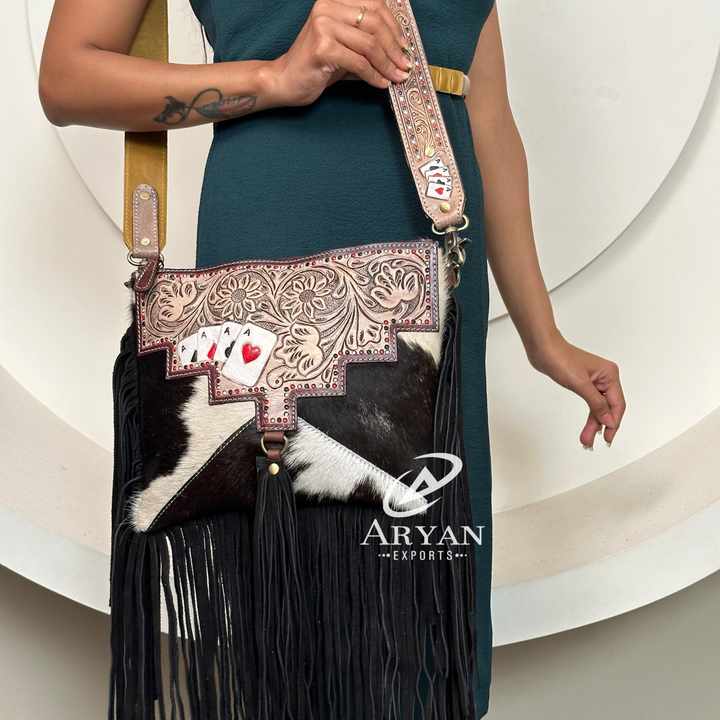 Product Name:Hand Tooled Cowhide Aces Handbag