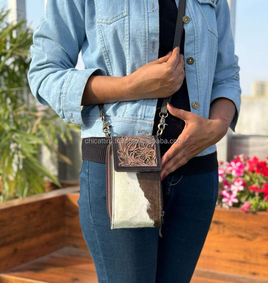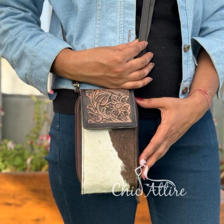 Western Stylish Tooled Cowhide Leather Mobile Sling Bag