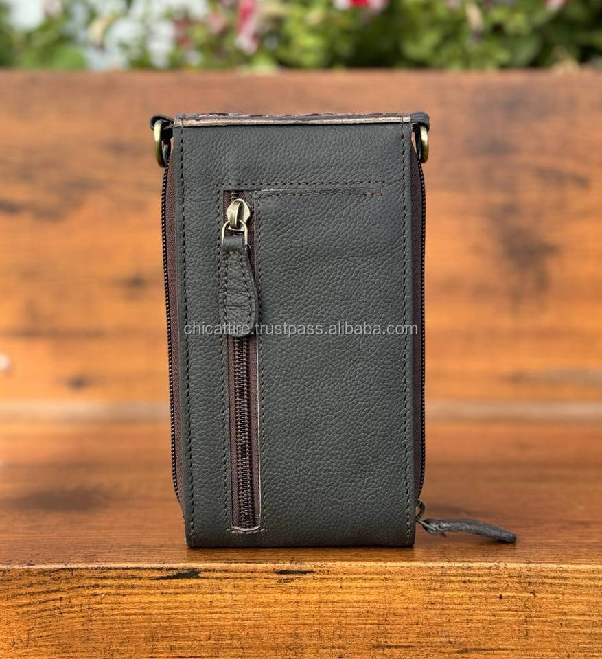New Handmade Western Stylish Tooled Cowhide Leather Mobile Sling Bags Hot Sale Custom Genuine Leather Women Crossbody Phone Bags