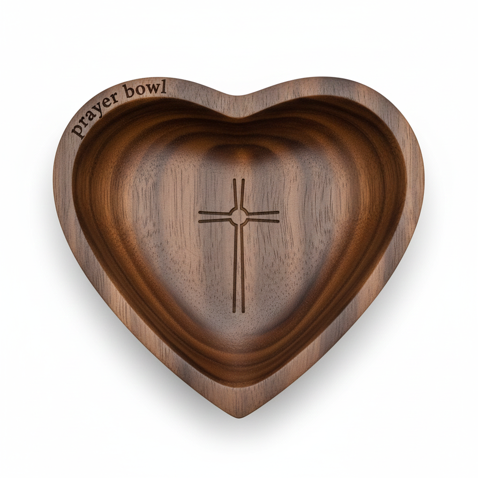 New Heart Shaped Religious Prayer Bowl Carved Wooden Cross Eco-Friendly Home Decor Candles Centerpiece Christian Gifts American
