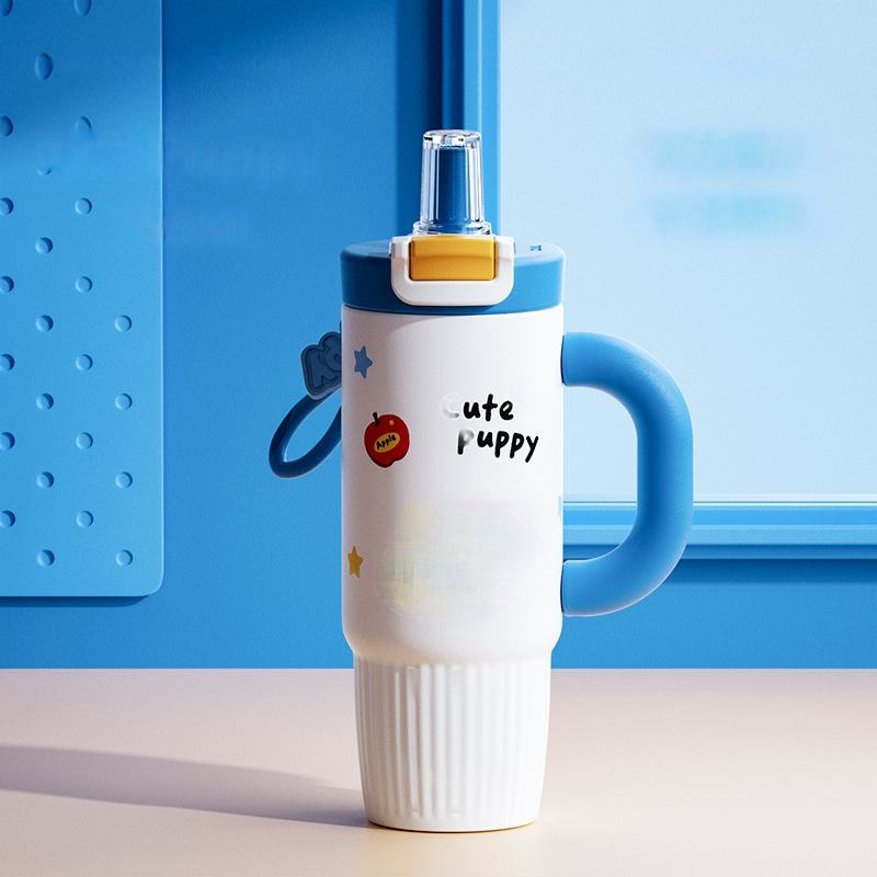 New High Appearance 316 Stainless Steel Thermos Cup Large Capacity Tumbler Handle Dual Drink Straw Camping Eco-Friendly Portable