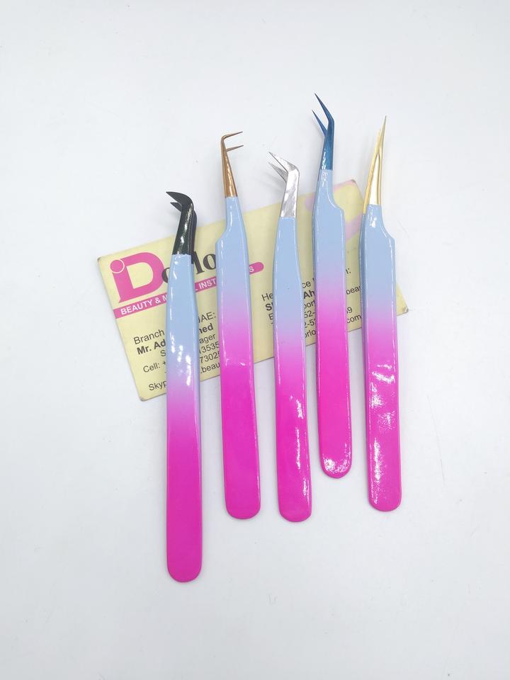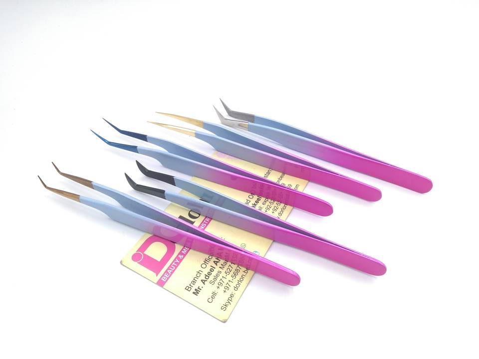 Different Plasma Tips Eyelash Extension Tweezers Pink Blue 2 in 1 Color Boot Volume & Isolation Tweezers For Eyelashes