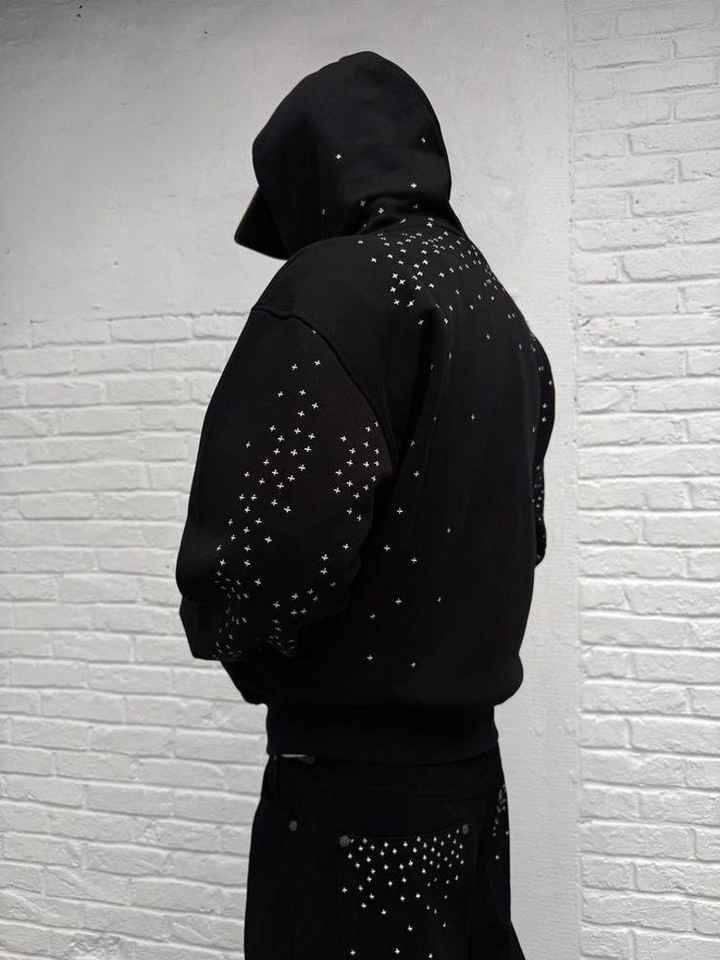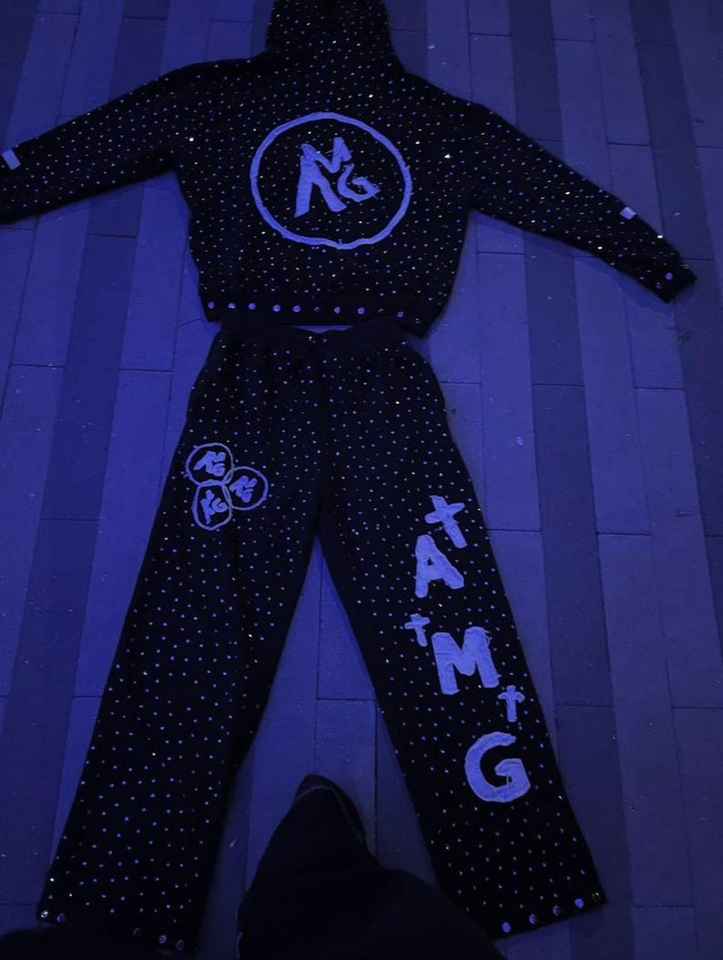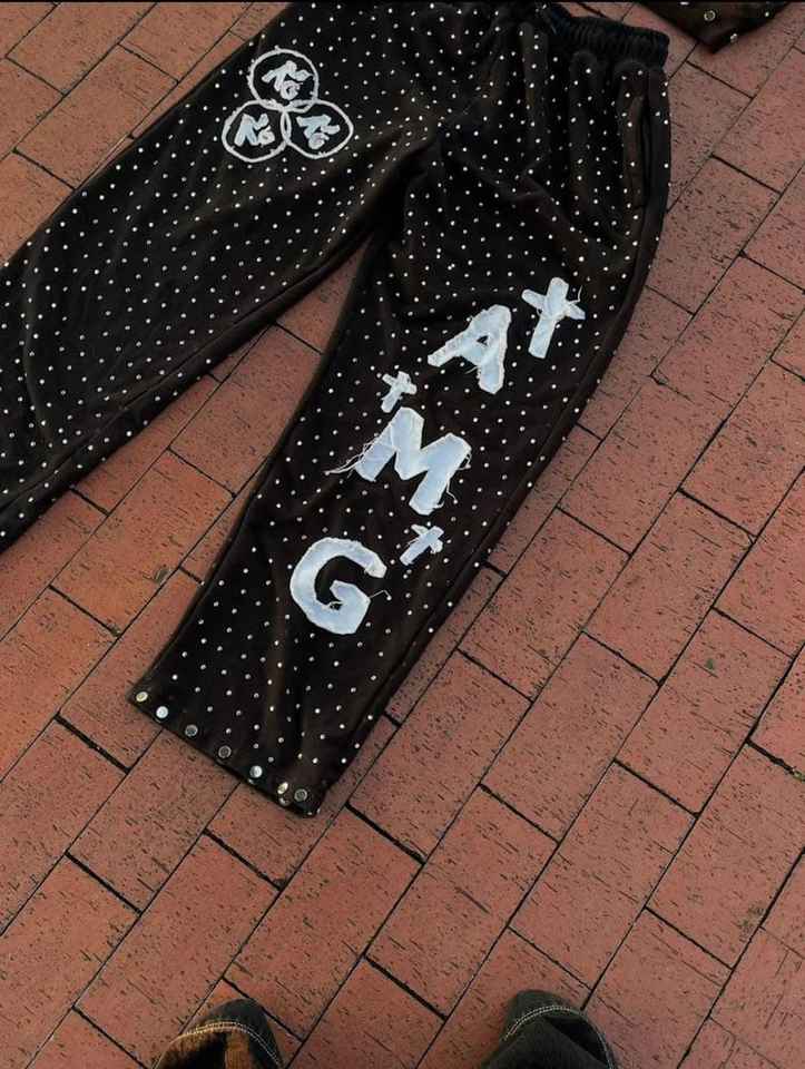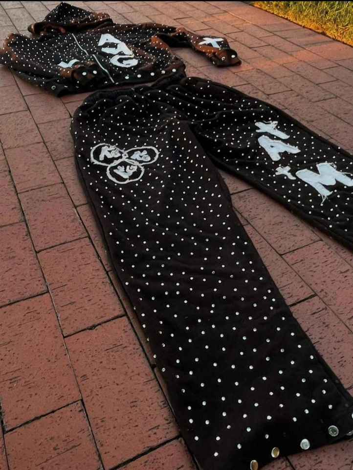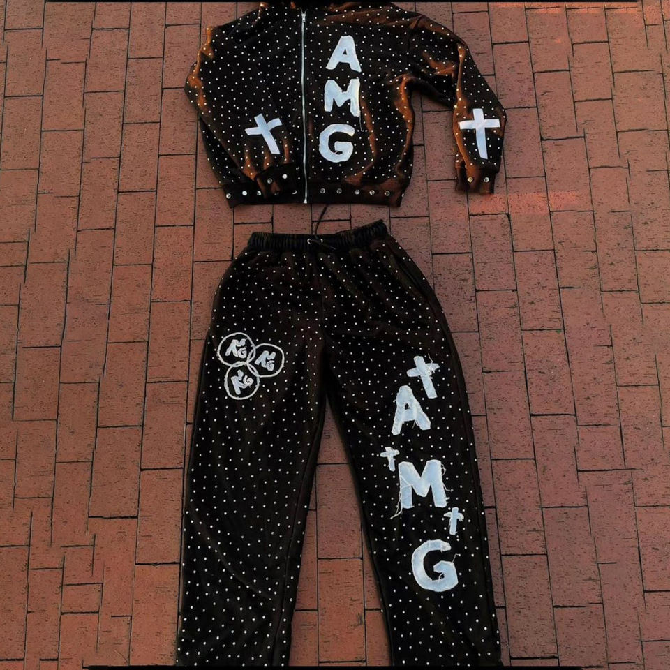 New High Quality 2026 Custom Dusty Rose Rhinestone Tracksuit Hand-Set Crystal Hoodie & Jogger Set Custom Logo Tracksuit