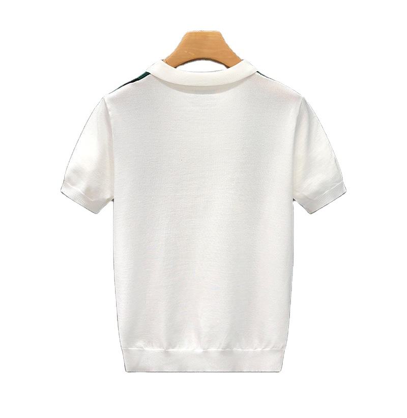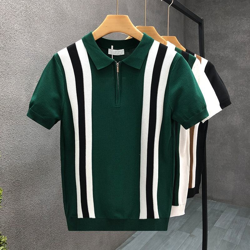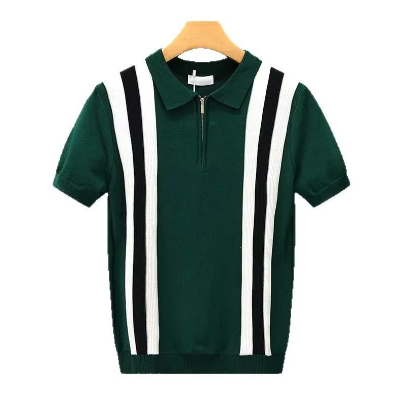 New High Quality Anti-Wrinkle Print Zipper for T-Shirt Men's Short Sleeve Fashionable Lapel Contrast Casual All-Match