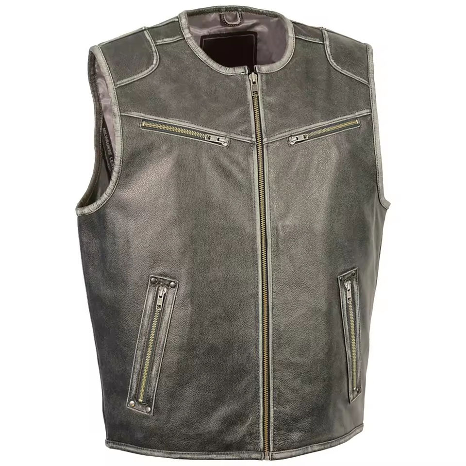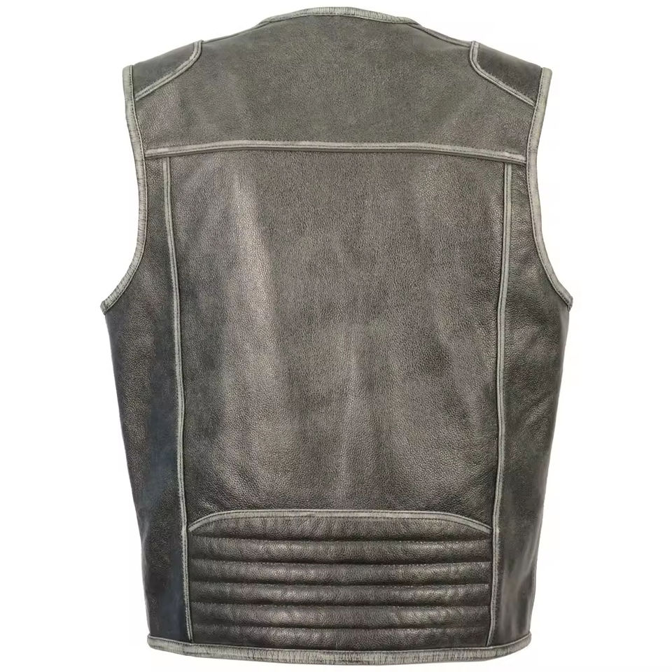 New High Quality Black Leather Vest Zip Custom Vest Jacket for Men Casual Sleeveless Men's Vest Men's Jackets