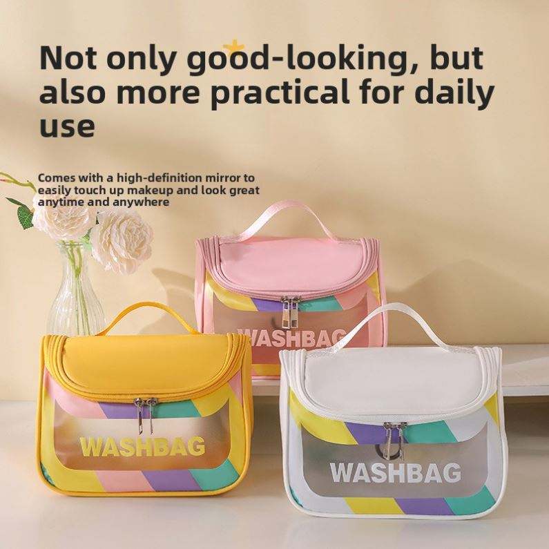 New High Quality Colorful Makeup Bag Handle PVC Waterproof Toiletry Wash Bag Travel Hanging Hook Cosmetics Bag for Women