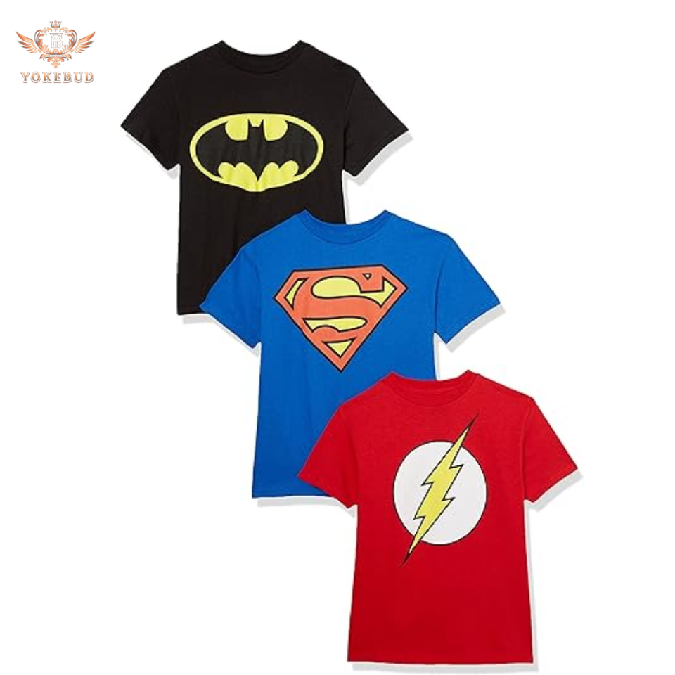 New High Quality DC Comics Kids T Shirt Customized Logo Cotton Tees Boys Cartoon Superhero Tops Wholesale OEM Made in Bangladesh
