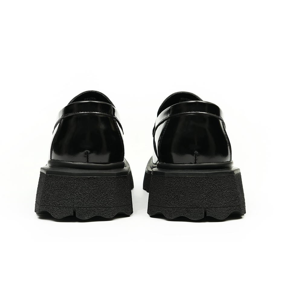 Women's Black Crinkle Patent Leather Buckle Loafer Shoes