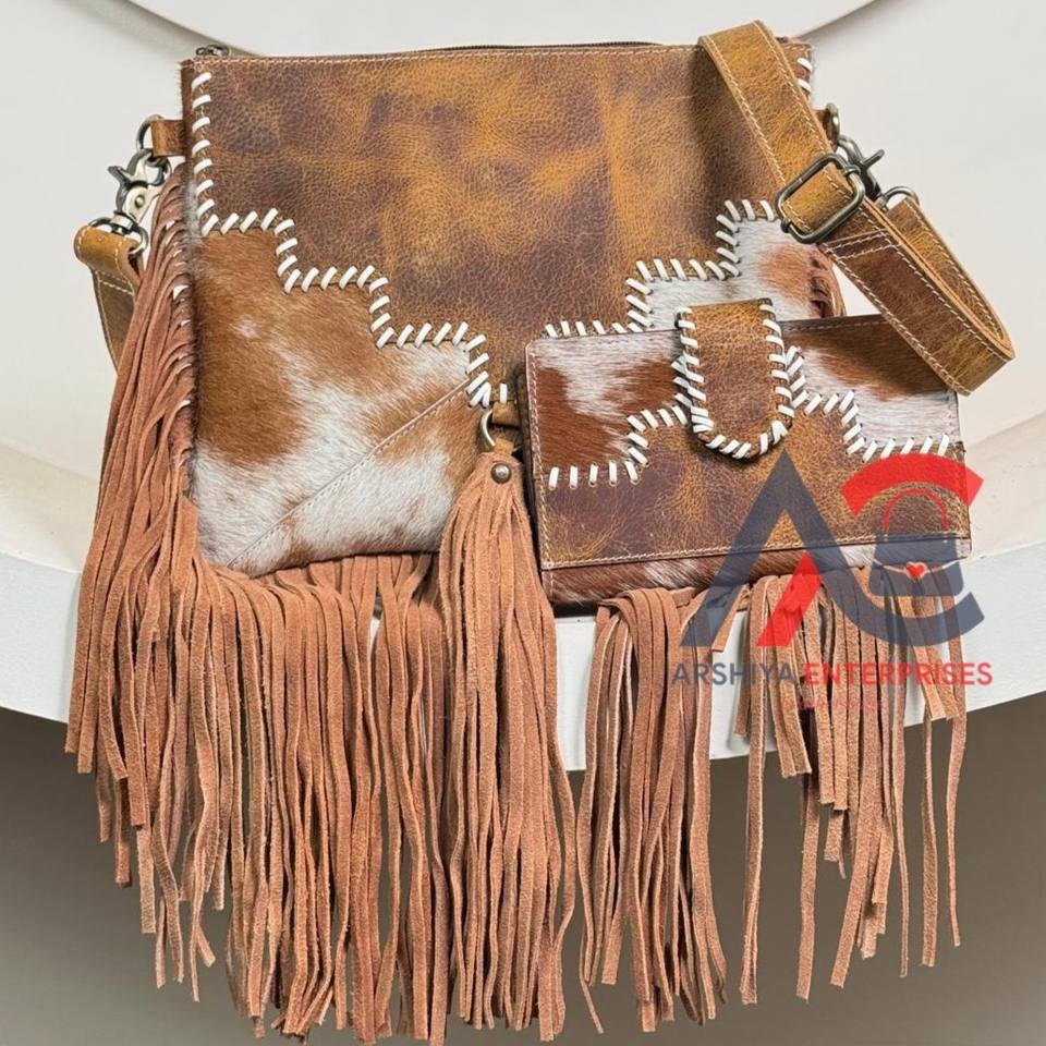 Cowhide Leather Fringe Bag & Cowhide Bifold Wallet