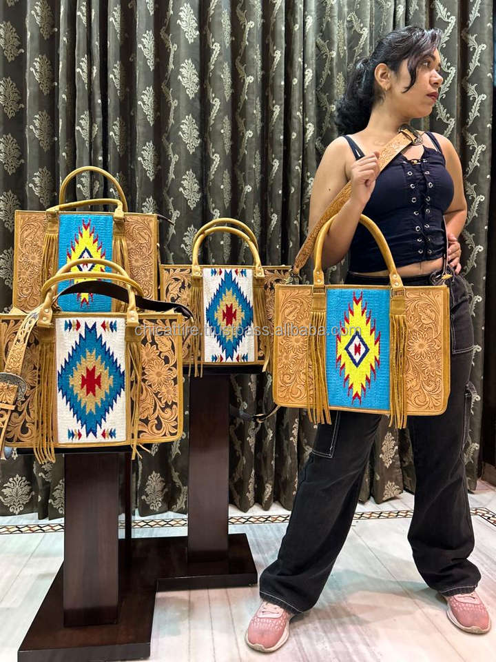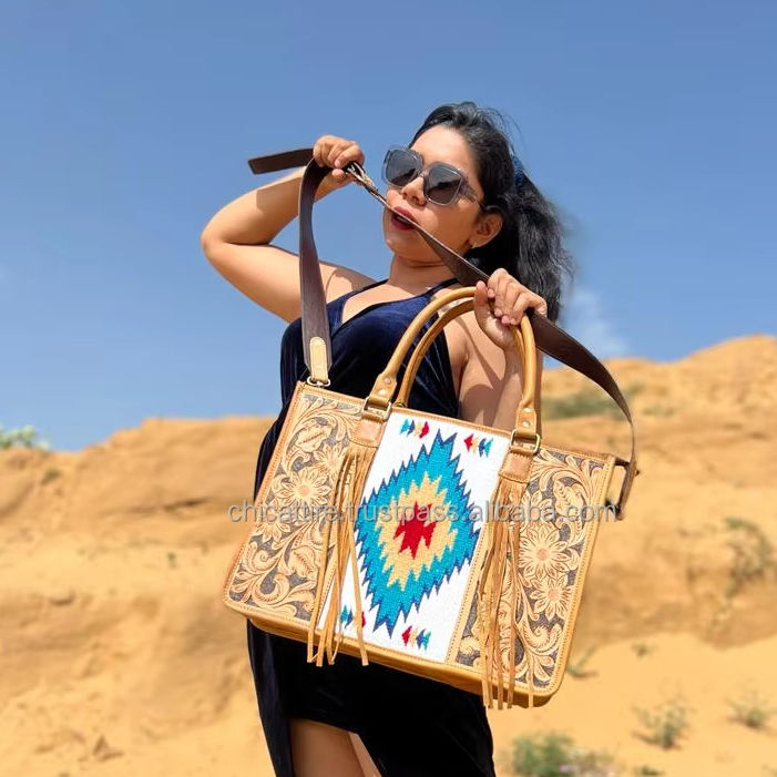 New High Quality Hand Tooled Carving Leather Fringe Tote Bag Designer Luxury Purse Jacquard Leather Handbags for Women Multi Use