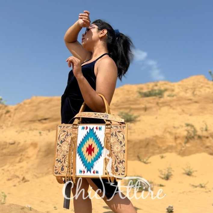 Hand Tooled Saddle Blanket Tote Bag