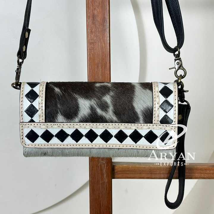 Hand Tooled Checkered Leather Crossbody Mini Bag