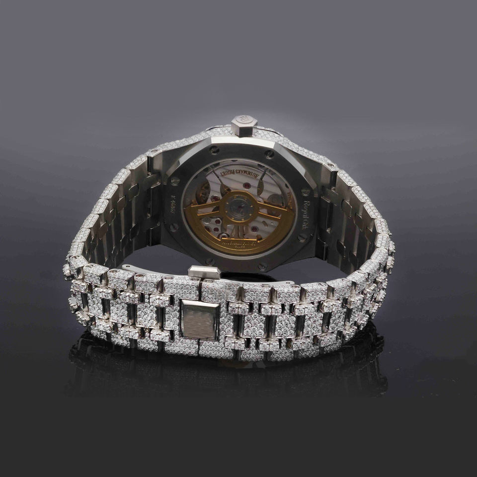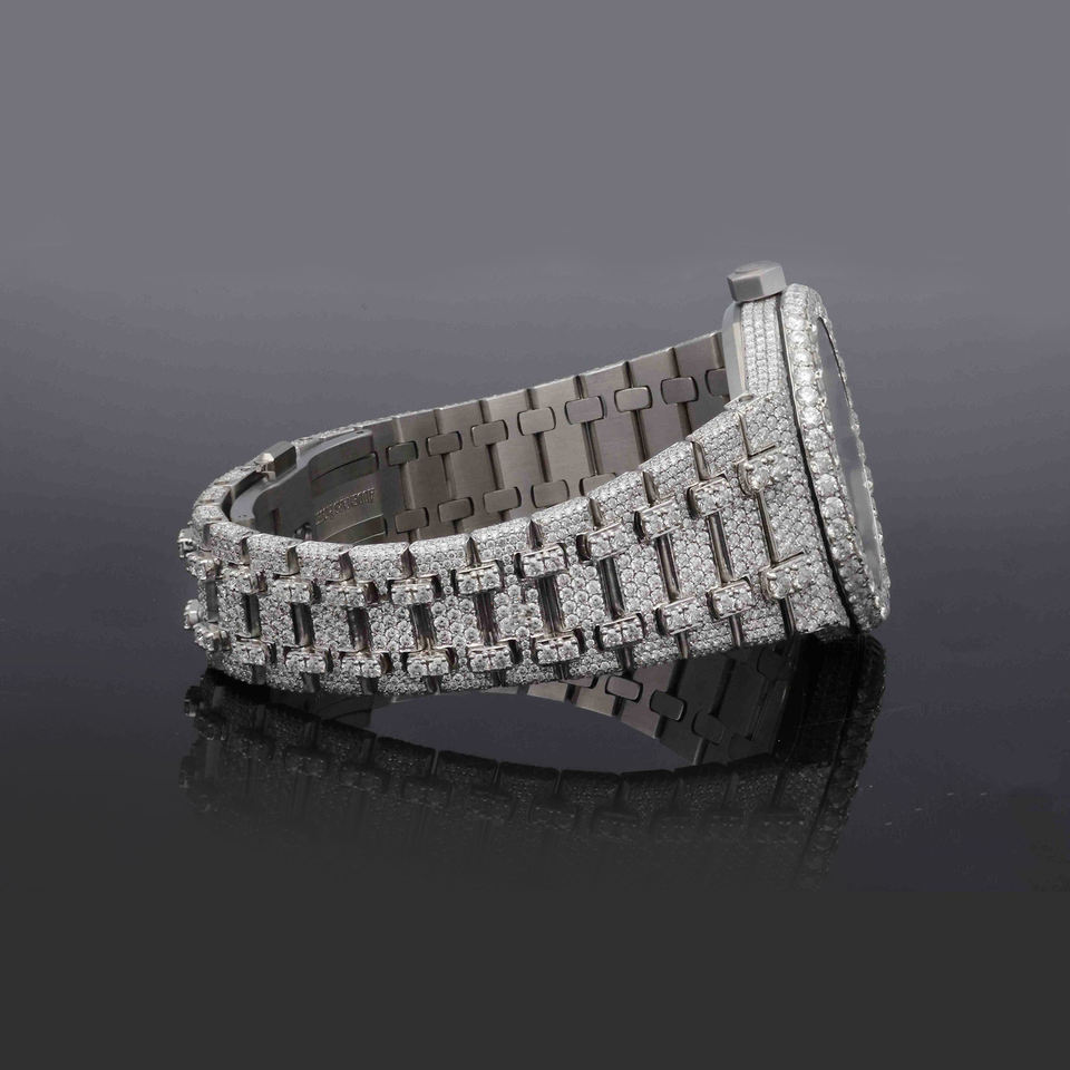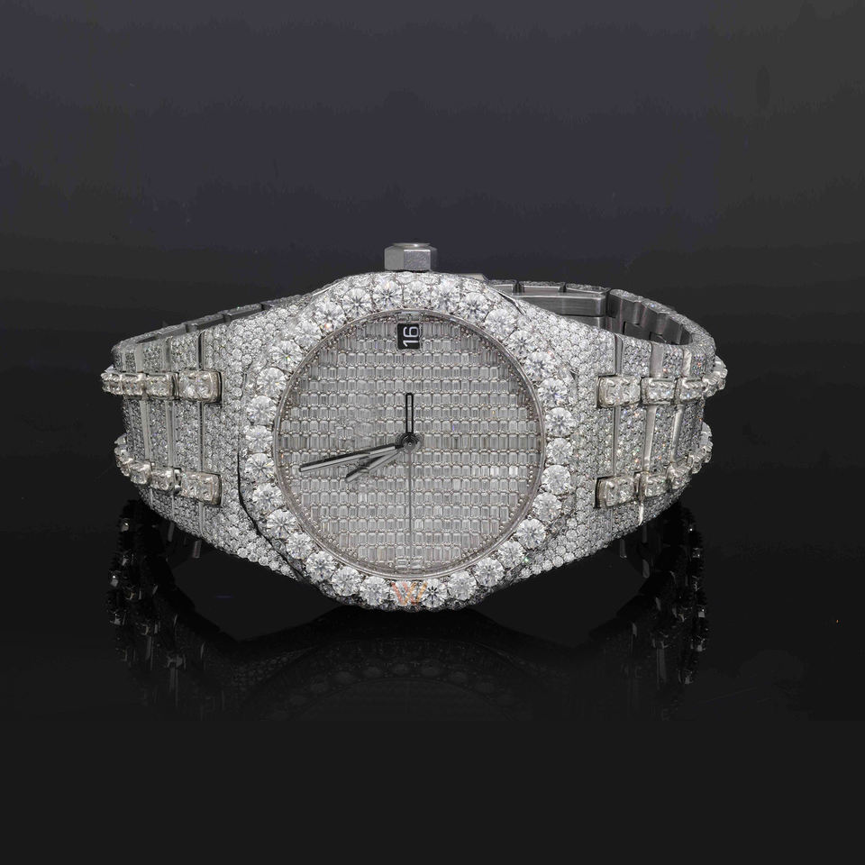 New High Quality Luxury Unisex Bling Wrist Watch Fully Diamond Iced Gold Silver Hip Hop Style Stainless Steel Band ETA Movement