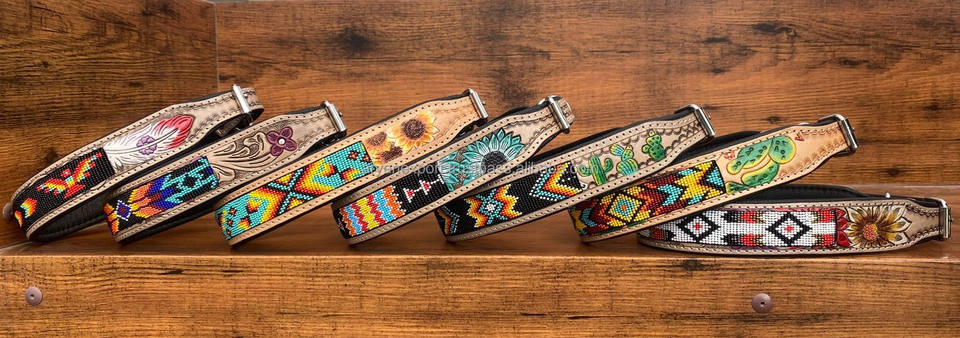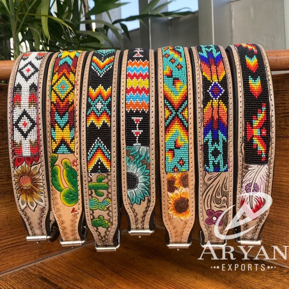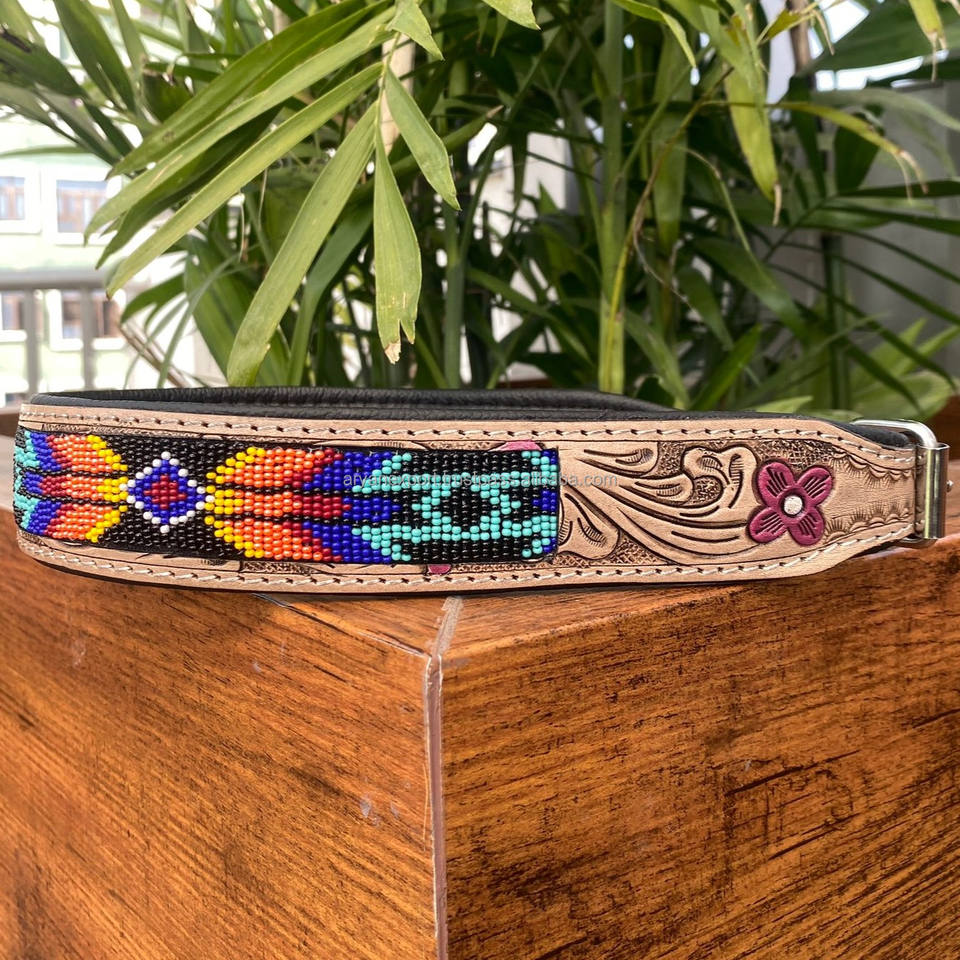 Product Name:Hand Tooled Leather Beaded Dog Collar