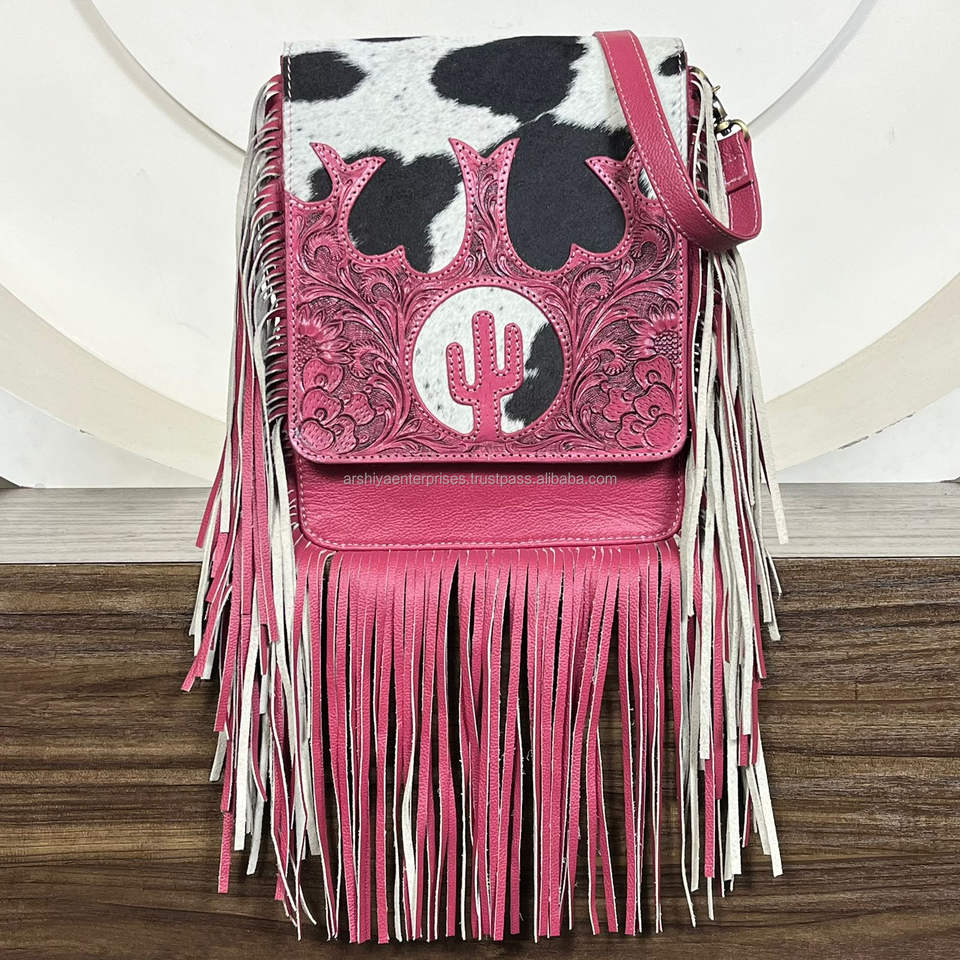 Product name:Hand Tooled Leather Fringe Crossbody Bag