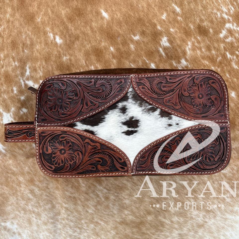 Western Cowhide & Tooled Toiletry Travel Bag