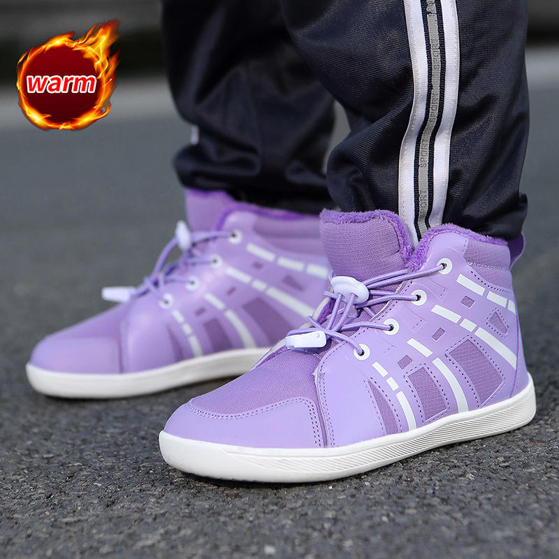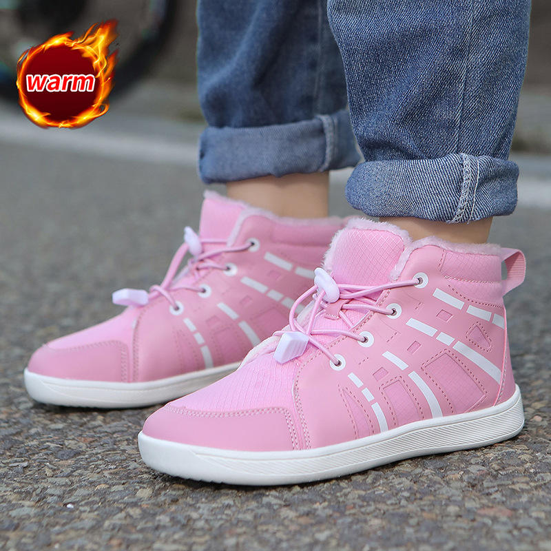 New High-Top Suede Sports Shoes for Boys and Girls Casual Wide-LAST with Anti-Slip TPU Midsole Floral Pattern Winter Shoes
