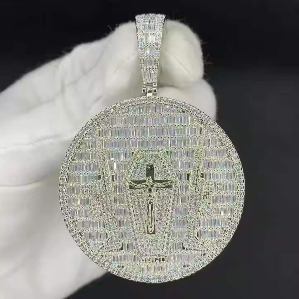 New Hip Hop Pendant Necklace Iced Out Moissanite diamond round Pendant Necklace for Men Fine Jewelry