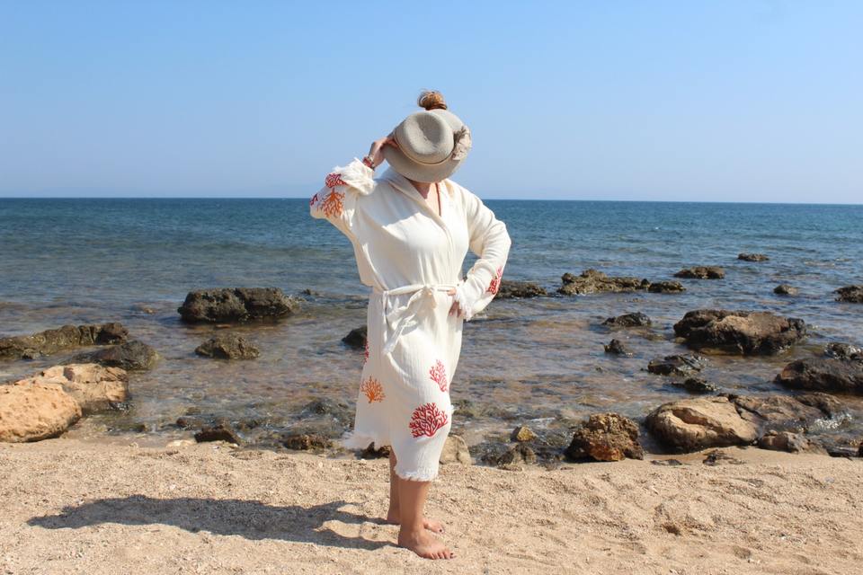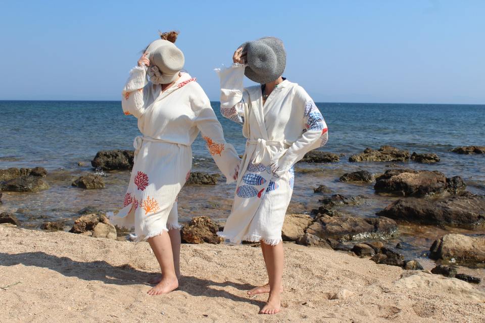 New Hooded Soft Turkish Muslin Fabric Bathrobe Colorful Printing Women Men Kids Beach Towel Spa Bathroom Home Hotel Quick Drying