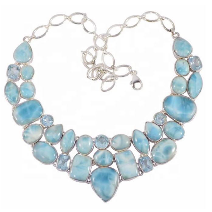 New Hot Design Simple 925 Sterling Silver Larimar Multi Gemstone Necklace for Woman Fashion Jewelry