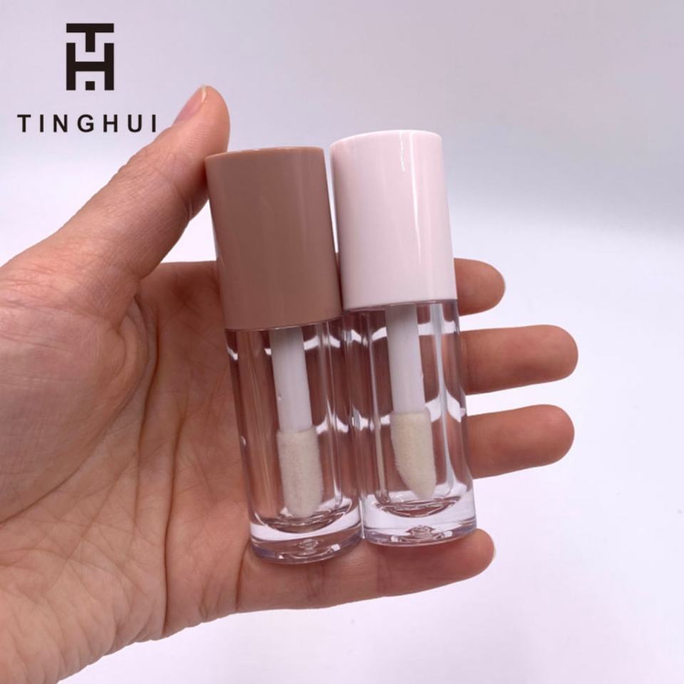 New Hot Sale 5ml Big Wand Lip Gloss Tube Cosmetic Plastic Transparent Black White Matte Cap Lip Gloss Packaging Container