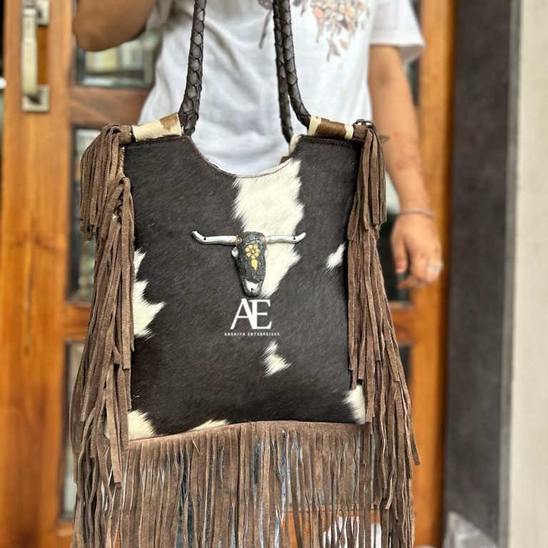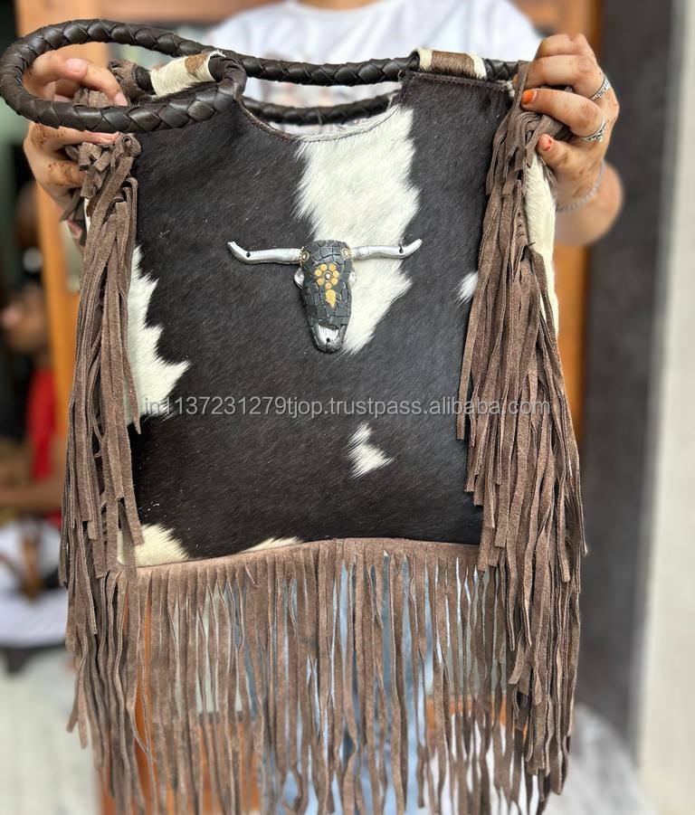 New Hot Sale Discount Cowhide Fur Leather Tote Bags Women Underarm Handbags High Standard Quality Bull Skull Piece Shopping Bags