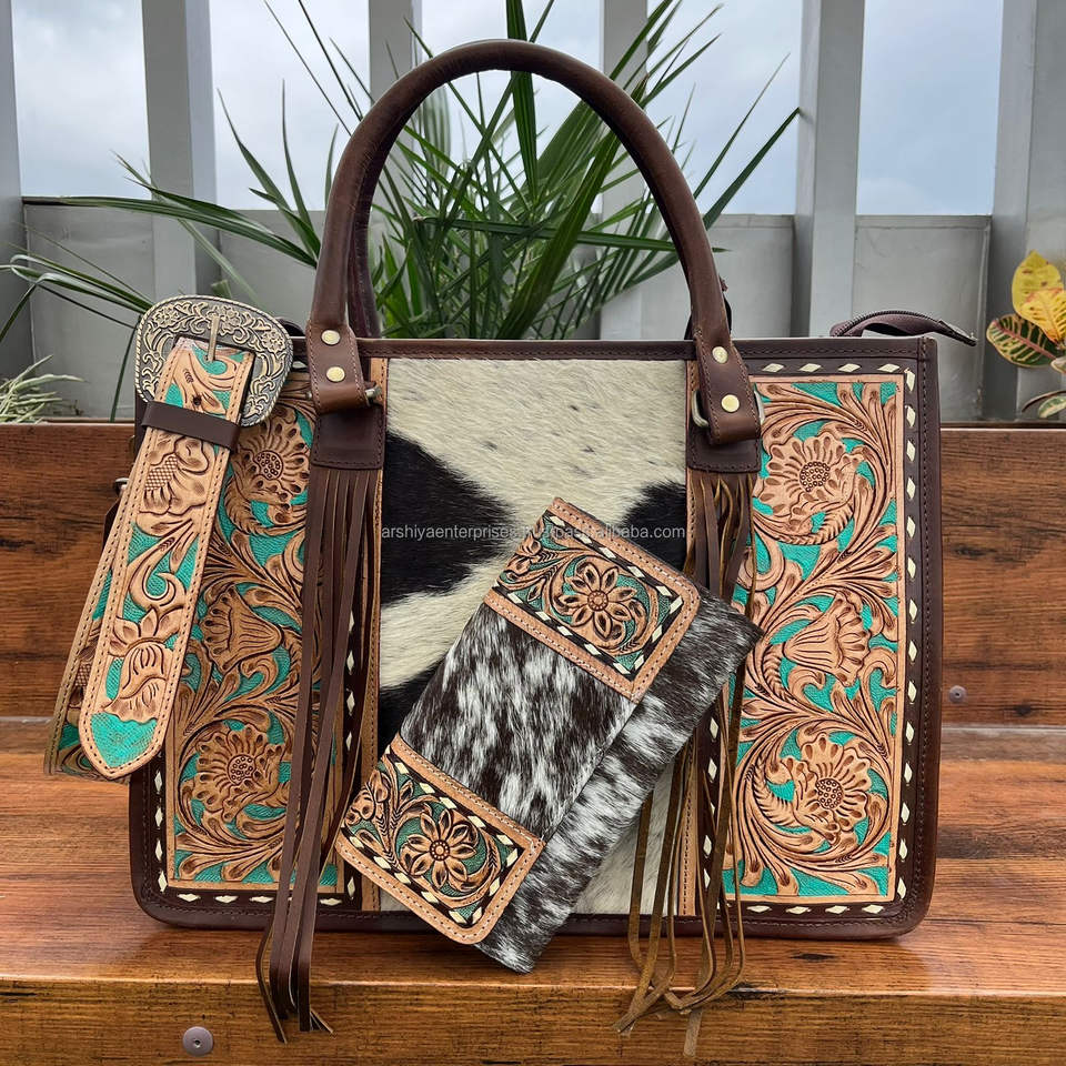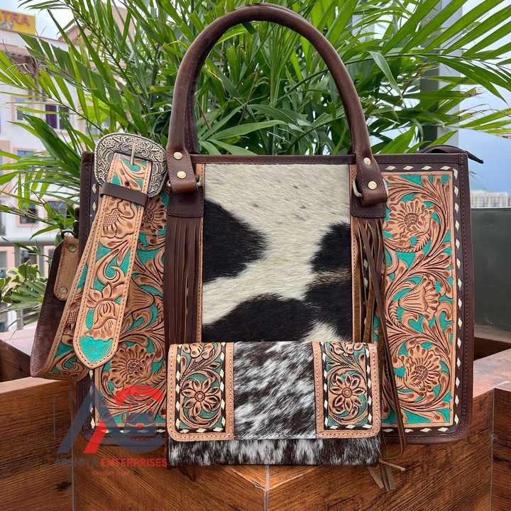 Product name:Hand Tooled Cowhide Leather 2 Pieces Combo Set