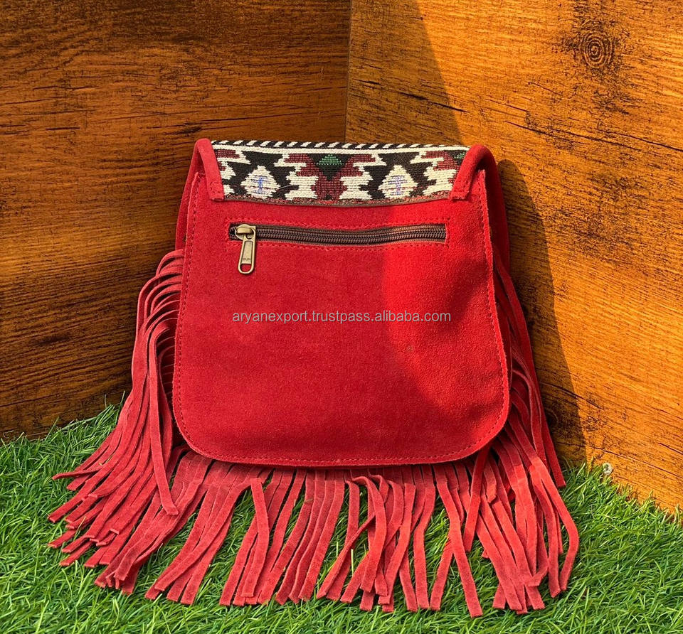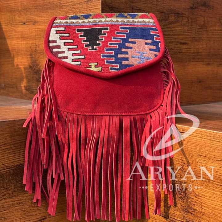 New Hot Sale Jacquard Fabric Suede Leather Fringe Sling Bags Multi Use New Vintage Design Crossbody Bag Cheap Rate Bulk Products