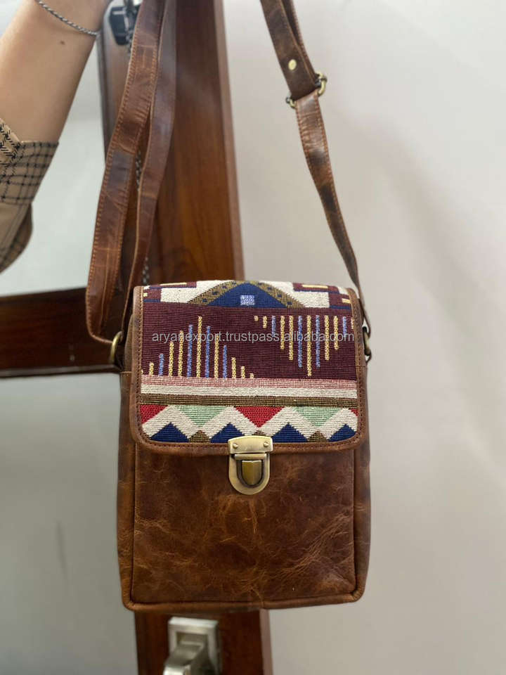 New Hot Sale Jacquard Handmade Genuine Leather Sling Bag Multi Use New Vintage Design Crossbody Bag Cheap Rate Bulk Product