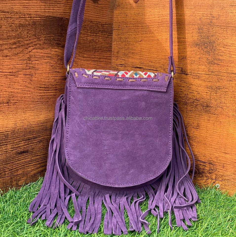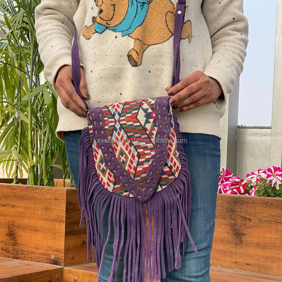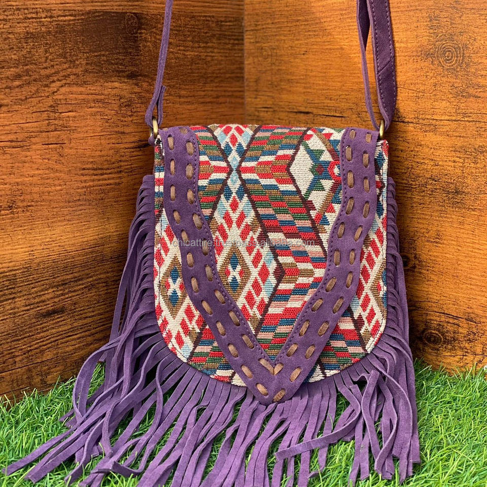 Product name:Stylish Jacquard Suede Fringe Leather Sling Bag