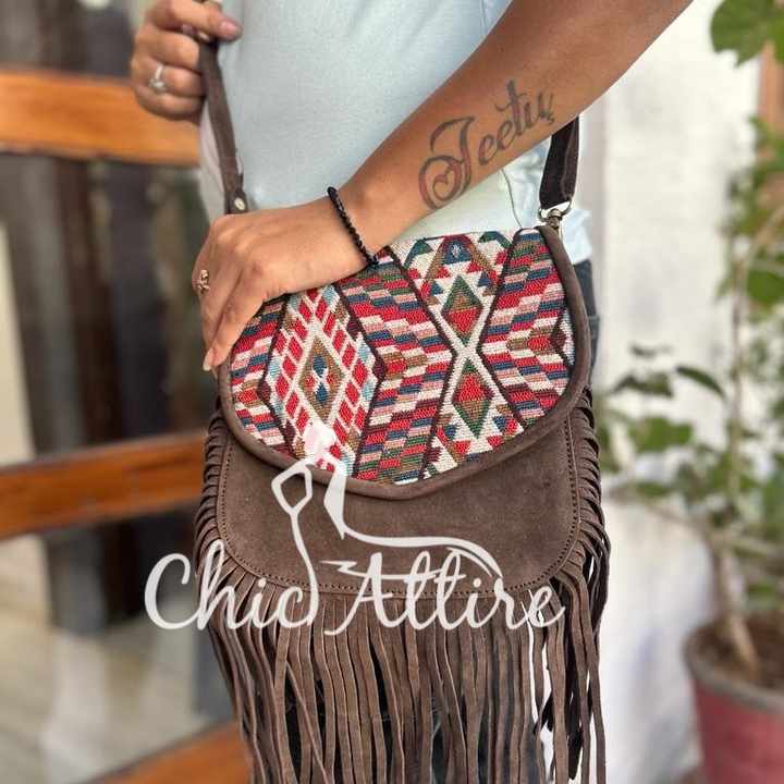 Product name:Jacquard Fabric Suede Leather Fringe Sling Bags