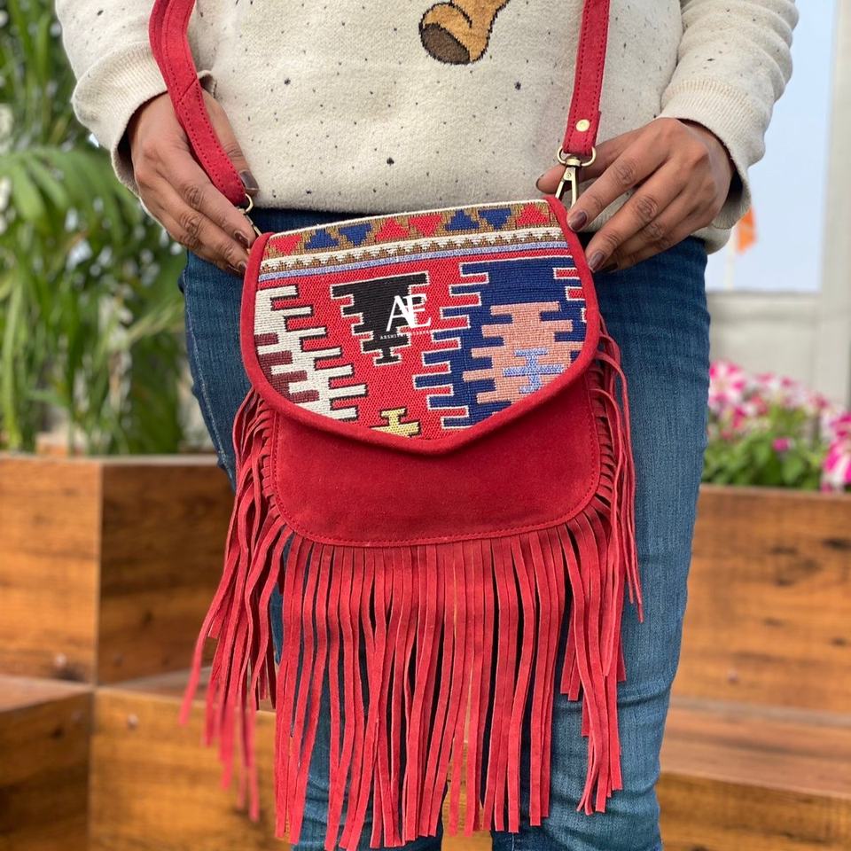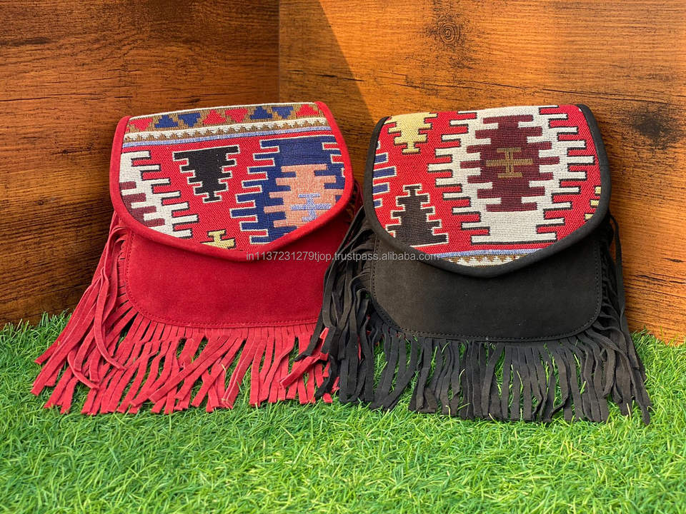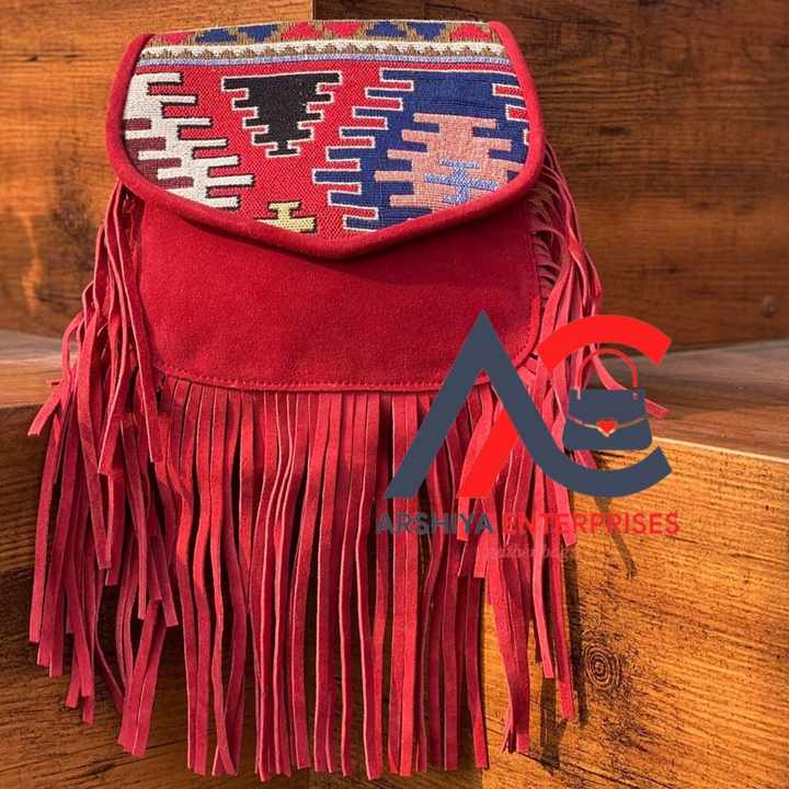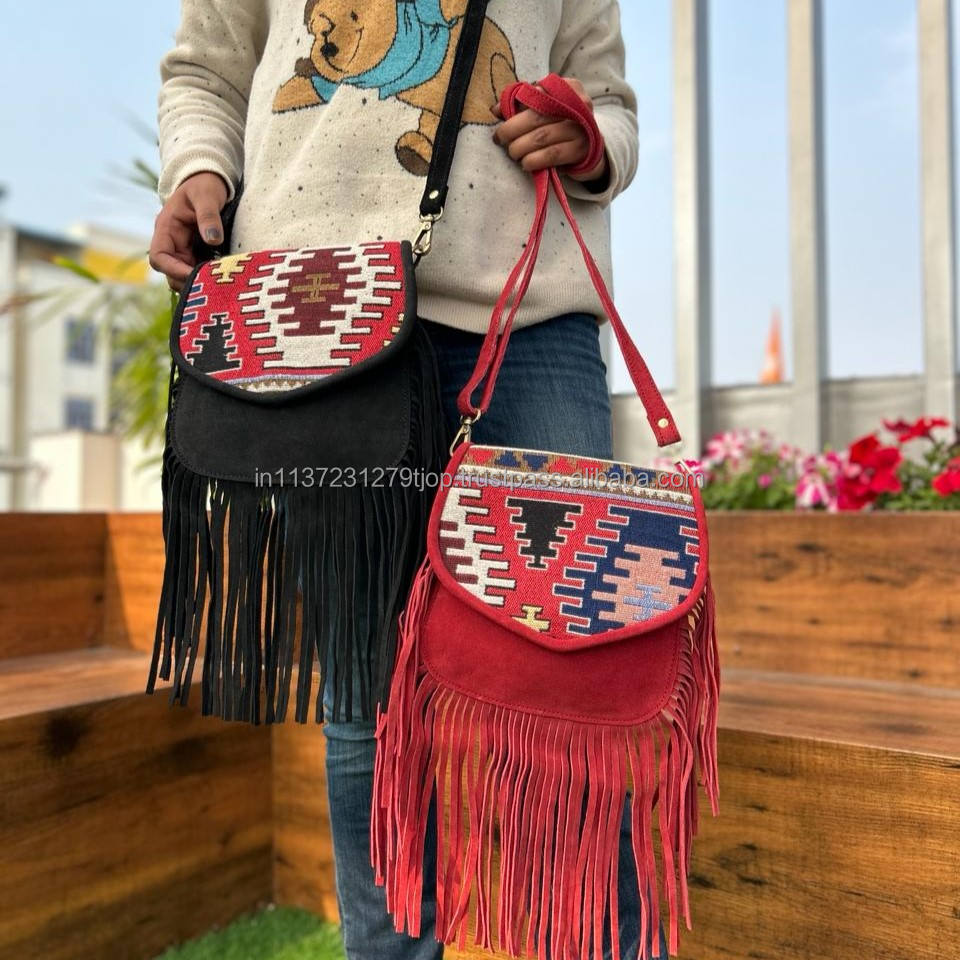 New Hot Sale Jacquard Handmade Suede Fringe Leather Sling Bag Multi Use New Vintage Design Crossbody Bag Cheap Rate Bulk Product
