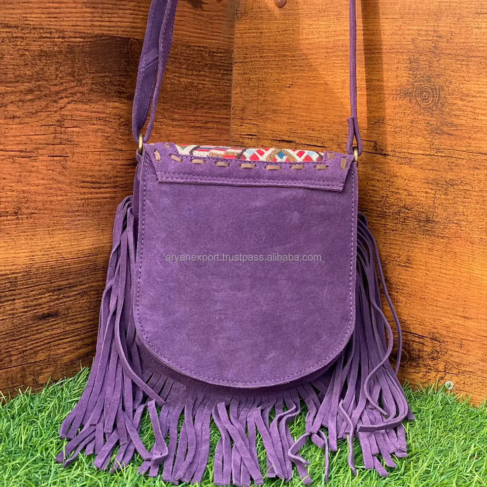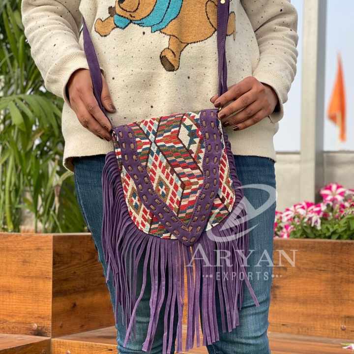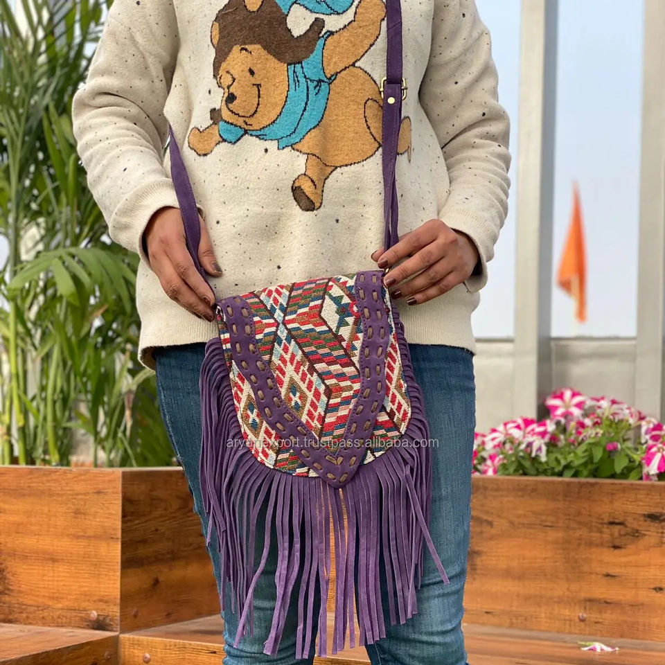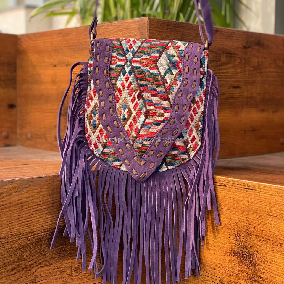 Product name:Stylish Jacquard Suede Fringe Leather Sling Bag