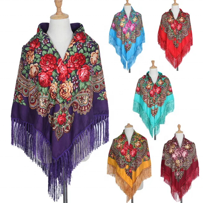 New Hot Sale Russian Square Scarf Shawl High Quality 110cm Luxury Fringe Twill Polyester Solid Women's Multifunction Outdoor All